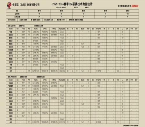 2025-2026賽季CBA常規(guī)賽第二十二輪,遼寧本鋼對陣天津先行者的比賽于31日晚在遼寧體育館進(jìn)行,遼寧本鋼隊(duì)最終105:91擊敗天津先行者。