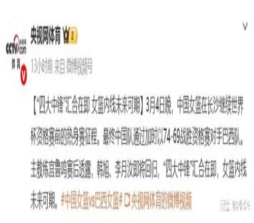 中國女籃最強陣容出爐!四大中鋒聯(lián)手出擊:宮魯鳴要橫掃世預(yù)賽了