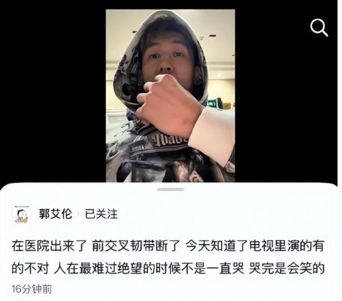 比賽結(jié)束之后,郭艾倫在個(gè)人社交賬號(hào)上發(fā)布了一條視頻,專(zhuān)門(mén)回應(yīng)了自己的情況,并官宣了傷情:前交叉韌帶斷了。