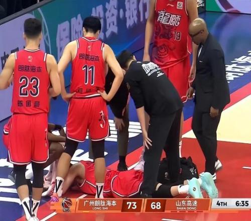 CBA常規(guī)賽第二輪補(bǔ)賽,廣州主場(chǎng)對(duì)陣山東的比賽中,郭艾倫一次快攻上籃,落地時(shí)卻不慎左膝受傷。